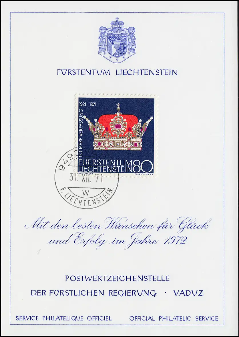Liechtenstein 547 Noël / Chapeau du prince - Carte de vœux pour la fin de l'année 1972