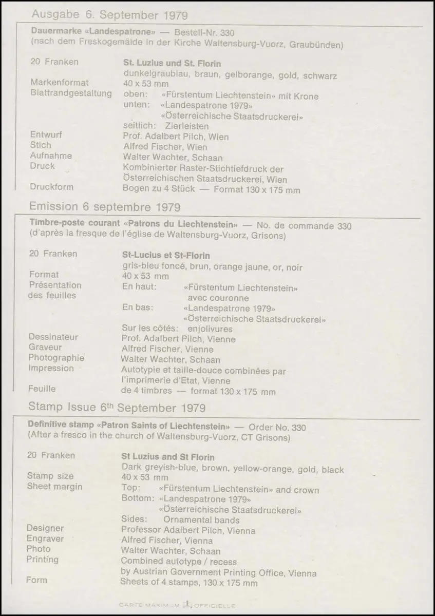 Liechtenstein 734 Saint Luzius 20 francs Carte maximale MK 10 ESSt VADUZ 1979