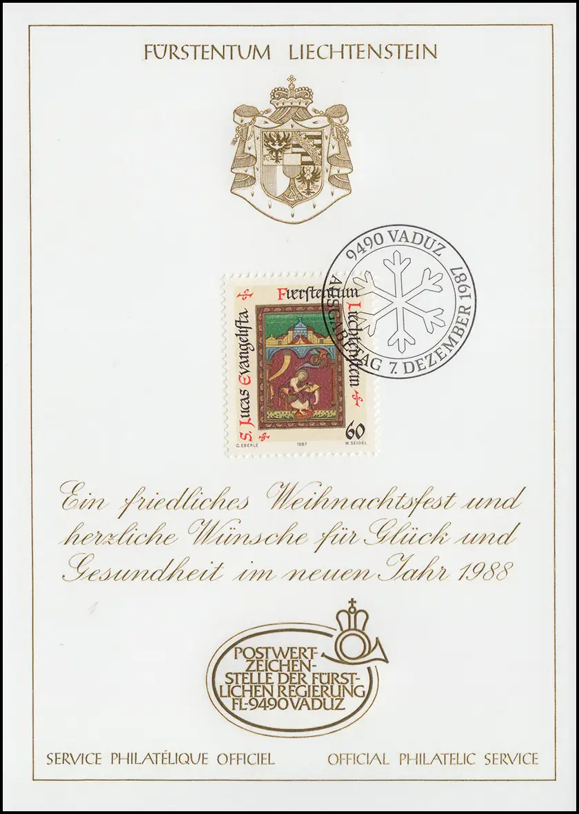 Liechtenstein 932 Noël - Carte de vœux pour la fin de l'année 1988