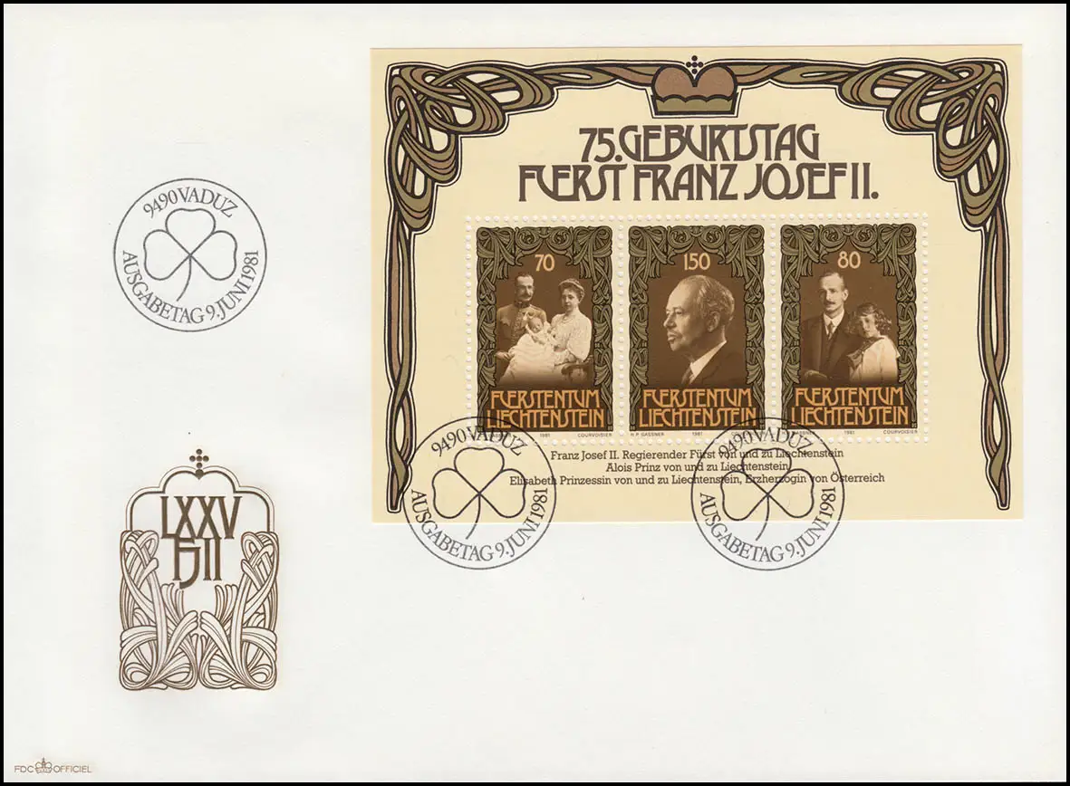 Liechtenstein Bloc 11 Anniversaire du Prince Franz Josef II, FDC ESSt Vaduz 1981