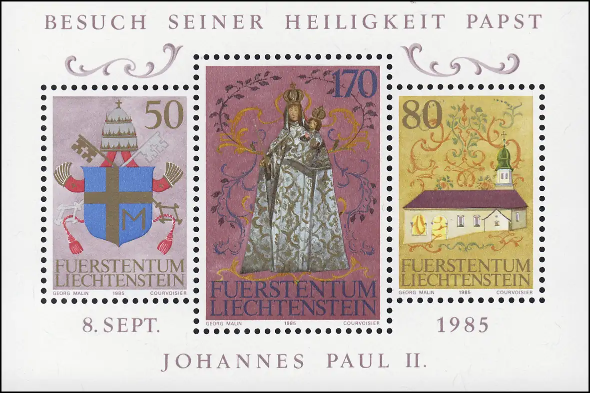 Liechtenstein Bloc 12 Visite du Pape Jean Paul II, frais de port ** / MNH