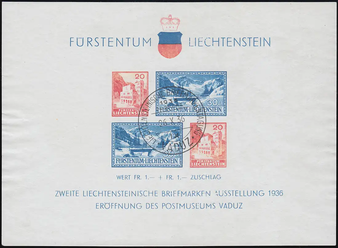 Liechtenstein Block 2 Vaduz Postmuseum / Exposition - Tampon spécial 26.10.1936