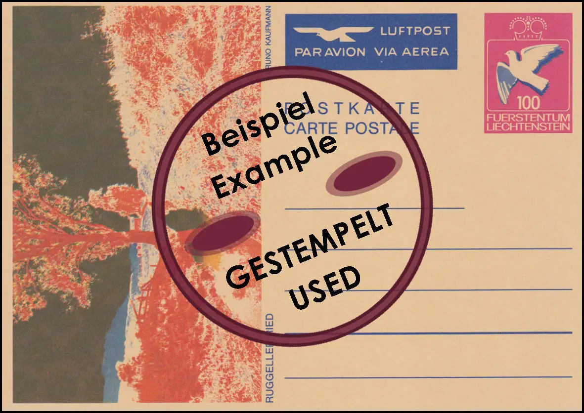 Liechtenstein Carte postale P 84 Pigeon: Ruggeller Ried (copié sur le papier du courrier aérien), O