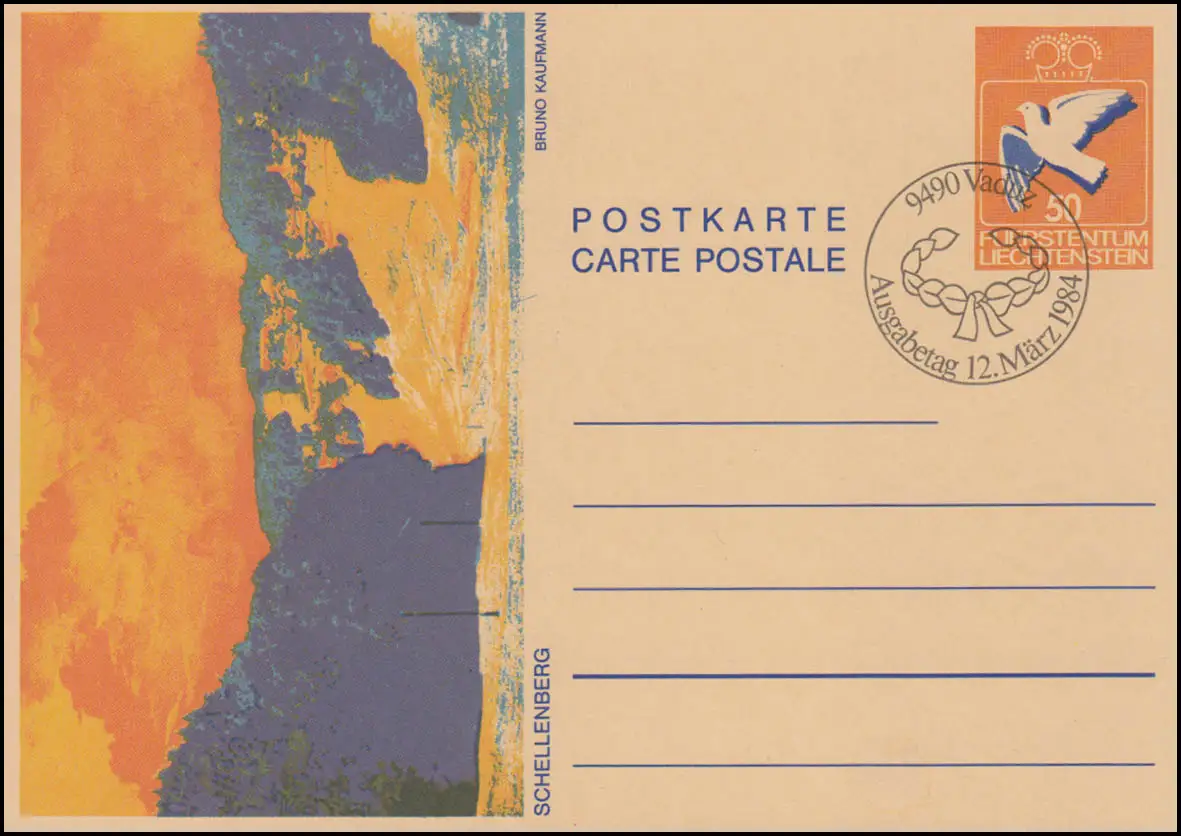 Liechtenstein Carte postale P 82 Pigeon: Schellenberg, ESSt VADUZ 12.3.1984
