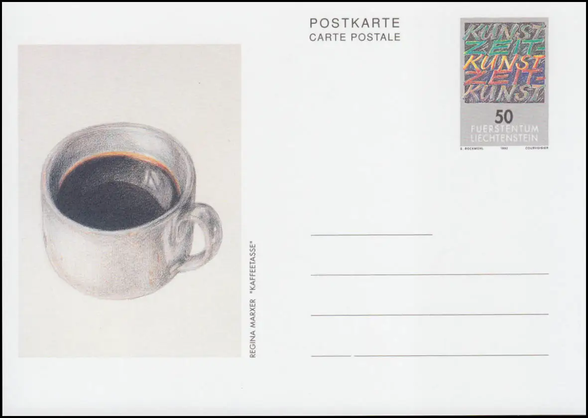 Liechtenstein Carte postale P 91 Motiv d'art contemporain: tasse de café, **
