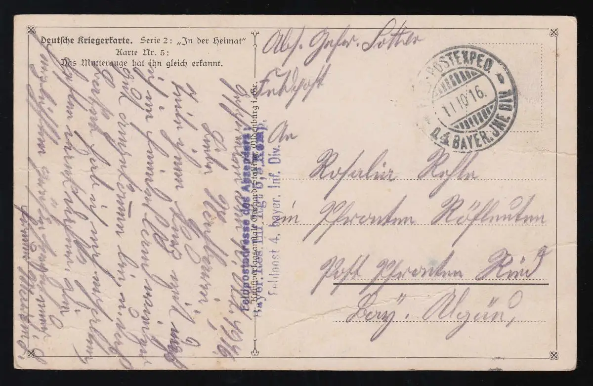 L'œil de la mère l'a reconnu, carte de guerriers Postexped. 11.10.1916