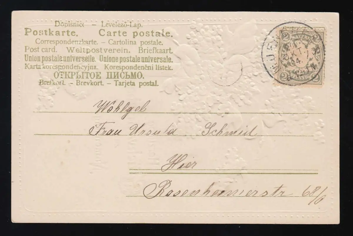 Lilas lila vase gris ornement de fleurs Félicitations jour de la fête des Fêtes Munich 20.10.1904
