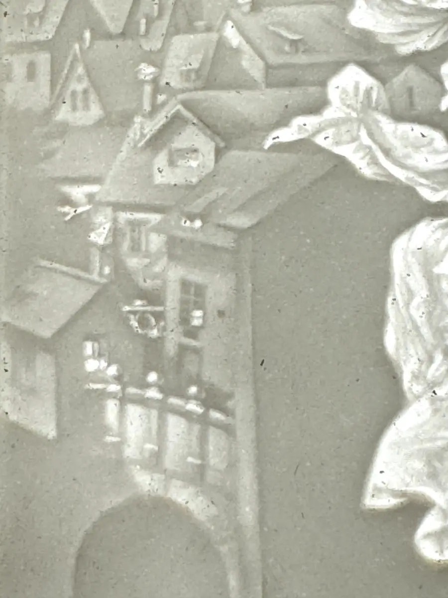 Une lithophanie est une fine plaque de céramique avec un relief dont l'épaisseur varie de 1,5 à 4 mm.