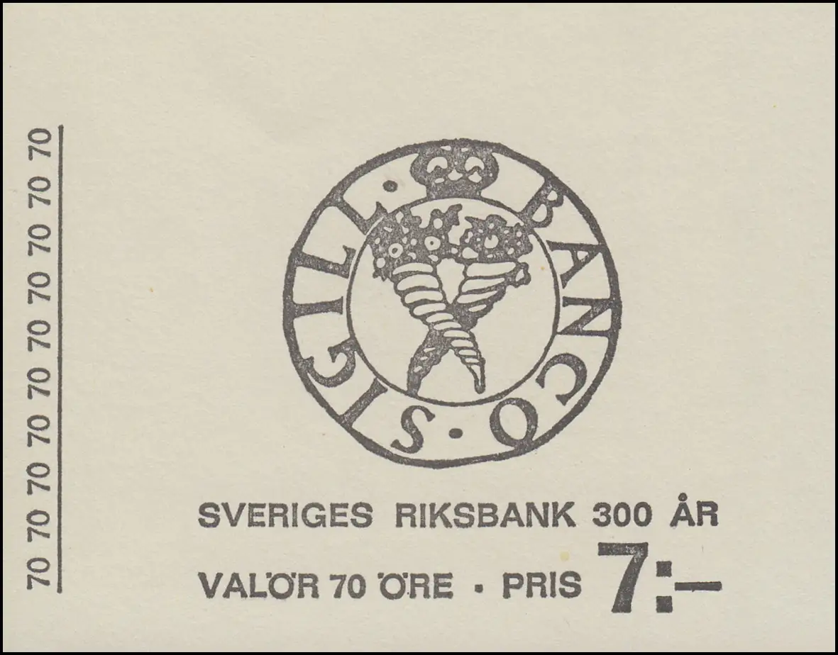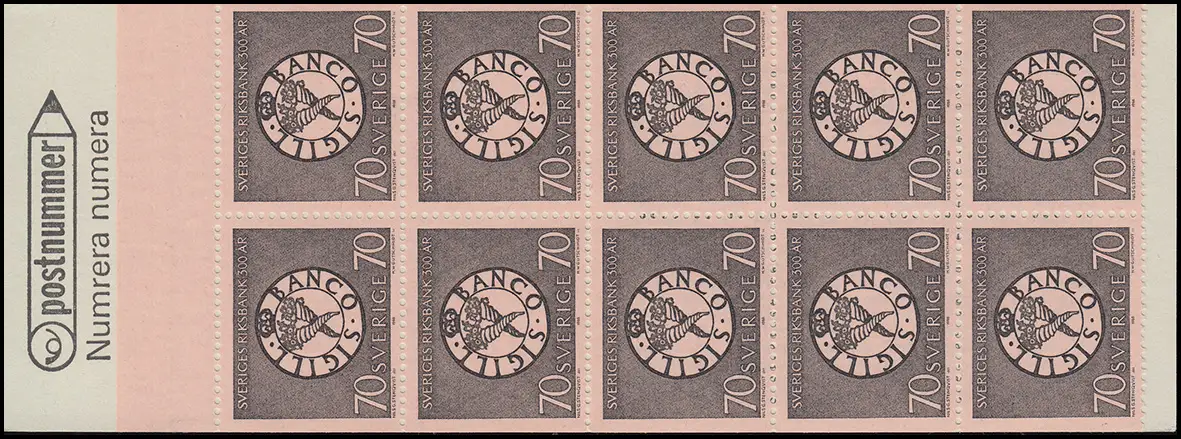 Livret de 300 ans Banque suédoise 70 Öre 10x 604D, **
