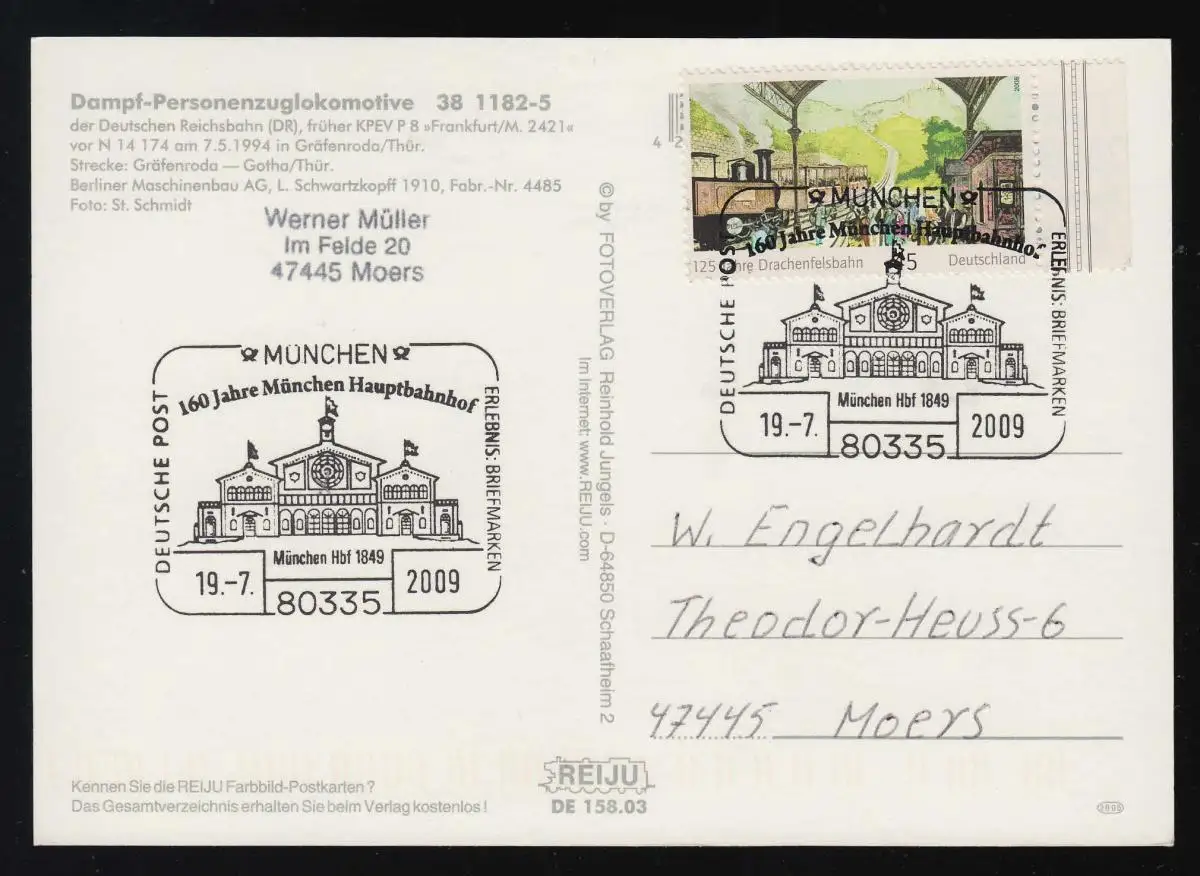 Locomotive de train de passagers à vapeur AK 38 1182-5 SSt MÜNCHEN 160 J. Gare centrale 19.7.09