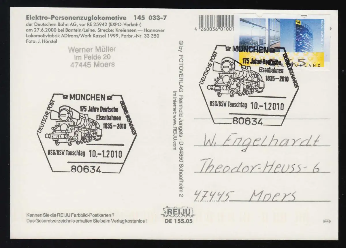 Locomotive électrique de train de passagers AK 145 033-7, SSt MUNICH 150 J. Rail 10.1.09