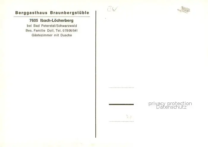 Loecherberg_Ibach Berggasthaus Braunbergstueble Loecherberg Ibach postalisch nicht gelaufen nach 1965 Erhaltung siehe scans [WerneD78] WernPID7