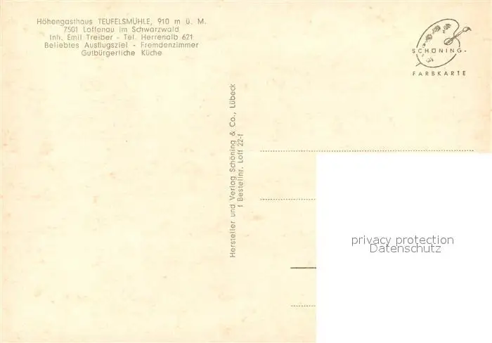 Loffenau_Bad_Herrenalb Hoehengasthaus Teufelsmuehle Schwarzwald Loffenau_Bad_Herrenalb postalisch nicht gelaufen nach 1965 Erhaltung siehe scans [FriedD77] Frierer