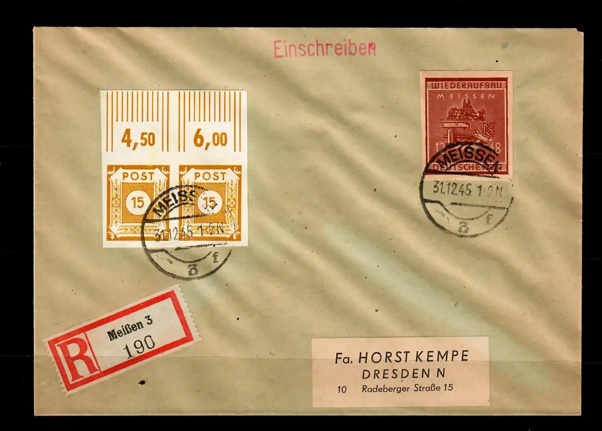 Édition locale Meisen: N° de Mi 38B, sur lettre R après Dresde, BPP Signature