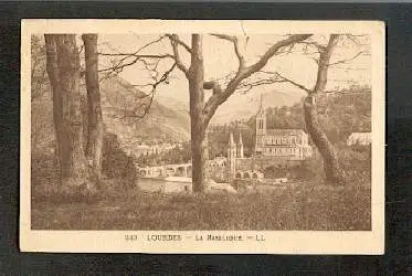 Lourdes. La Basilique. - Gelaufen. Briefmarke abgerissen. Kl. Riss. (Frankreich)