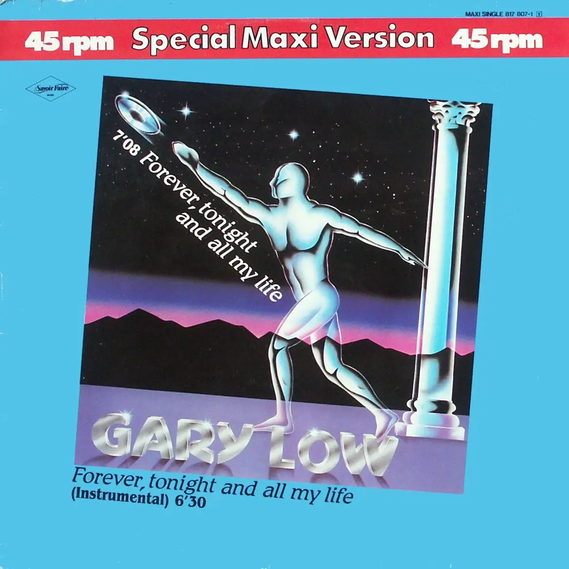 12" Maxi Gary Low - Forever, Tonight And All My Vie, État Disque VG+ Hülle VD+; Fabriqué en Germany 1983 Savoir Faire 817 807-1, Tracks Fores, Sonight and All Mon Li 7:08, [Instr] 6:30