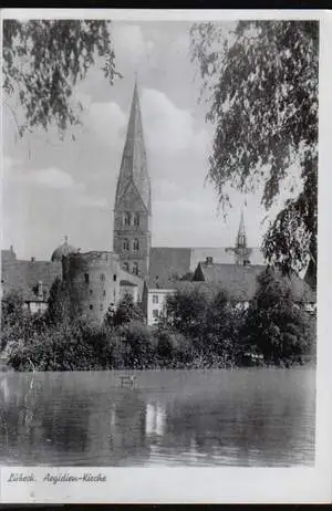 Lübeck. Aegidienkirche - Gelaufen. Briefmarke teilweise abgerissen. (NPLZ 23500) Posiadamy rowniez konto zlotowkowe w Polsce.
