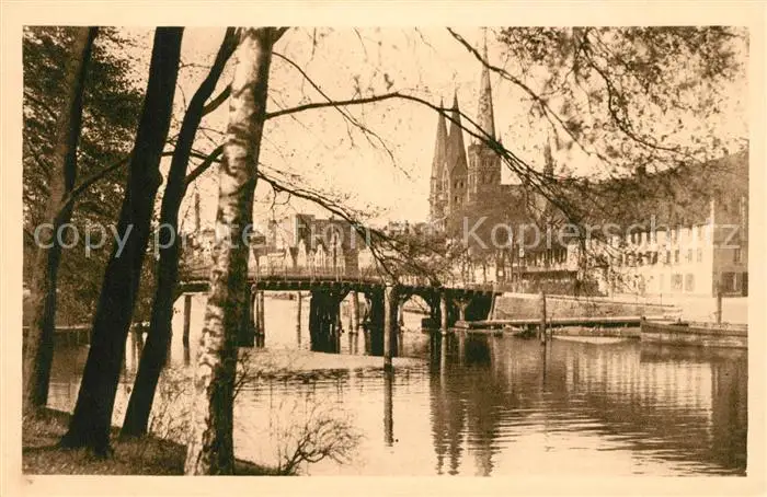 Luebeck Dankwartsbruecke Trave Blick zur Kirche Luebeck postalisch nicht gelaufen 1921-1965 Erhaltung siehe scans [FriedD77] Frierer