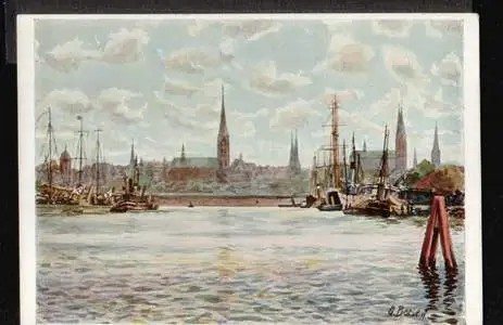 Lübeck. Einfahrt in den Hafen - Nicht gelaufen. Die Karte ist an den Rändern abgeschnitten. ??. (NPLZ 23500).
