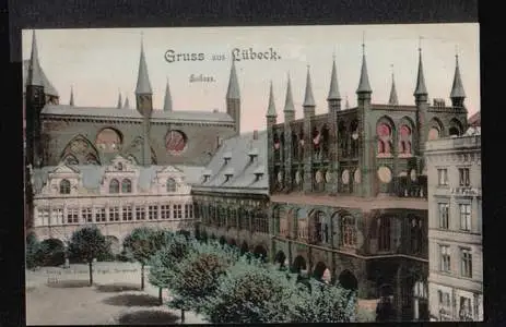 Lübeck. Gruss aus. Rathaus - Nicht gelaufen. (NPLZ 23500) Posiadamy rowniez konto zlotowkowe w Polsce.