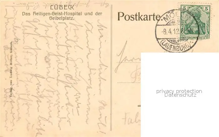Luebeck Heilig Geist Hospital Geibelplatz Luebeck postalisch gelaufen 1912 Erhaltung siehe scans [FriedD77] Frierer