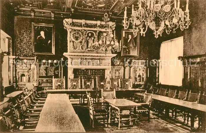 Luebeck Kriegsstube im Rathaus Gemaelde Kronleuchter Luebeck postalisch nicht gelaufen bis 1920 Erhaltung siehe scans [FriedD77] Frierer