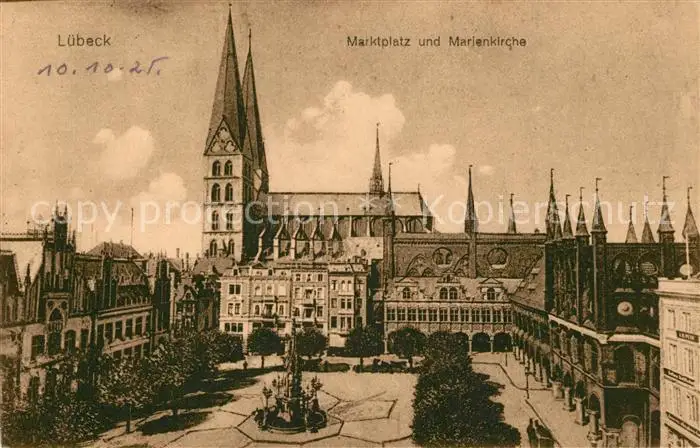 Luebeck Marktplatz Marienkirche Marktbrunnen Rathaus Luebeck postalisch nicht gelaufen 1925 Erhaltung siehe scans [FriedD77] Frierer