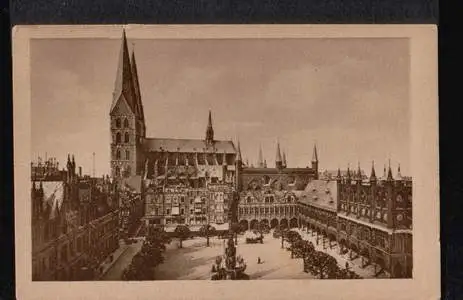 Lübeck. Marktplatz mit Rathaus und Marienkirche - Nicht gelaufen. (NPLZ 23500) Posiadamy rowniez konto zlotowkowe w Polsce.