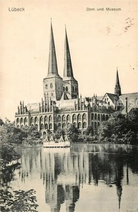 Luebeck Muehlenteich mit Dom und Museum Luebeck postalisch gelaufen 1914 Erhaltung siehe scans [FriedD77] Frierer