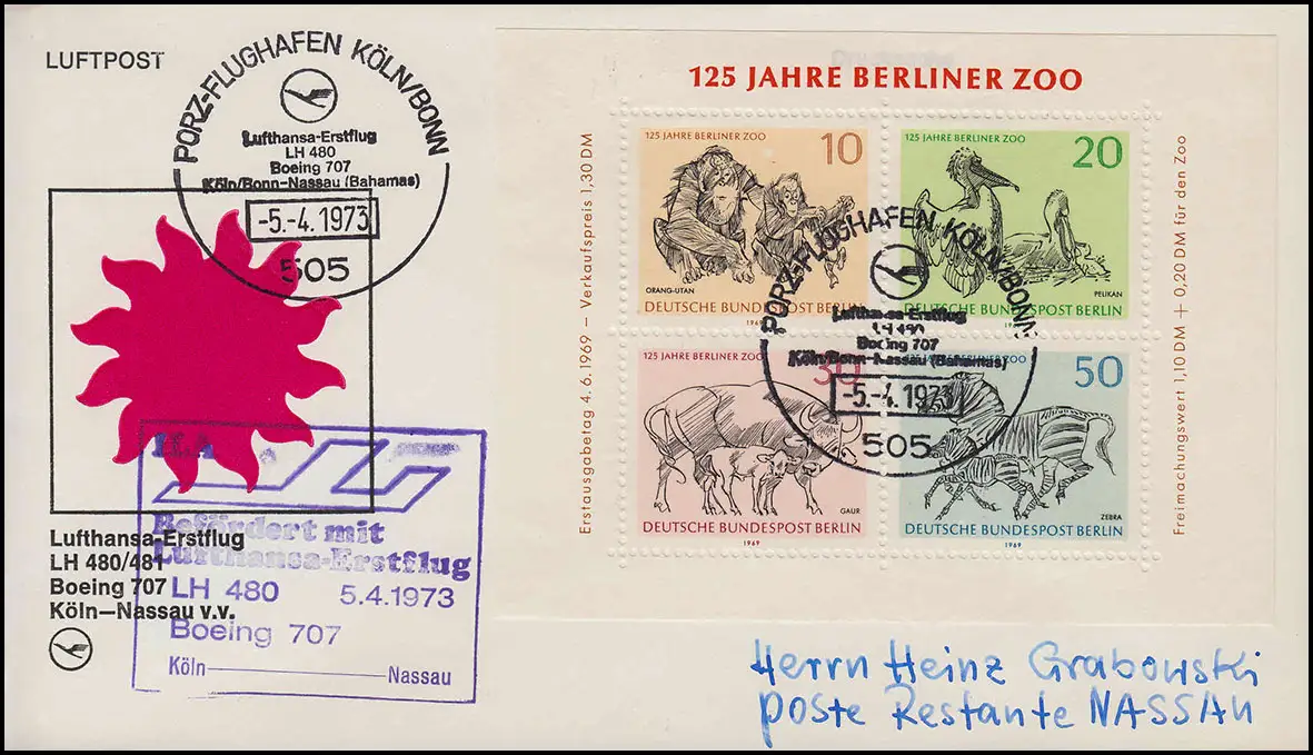 Lufthansa Premier vol LH 480 Boeing 707 KÖLN BONN / NASSAU (BAHAMAS) 5/6.4.1973