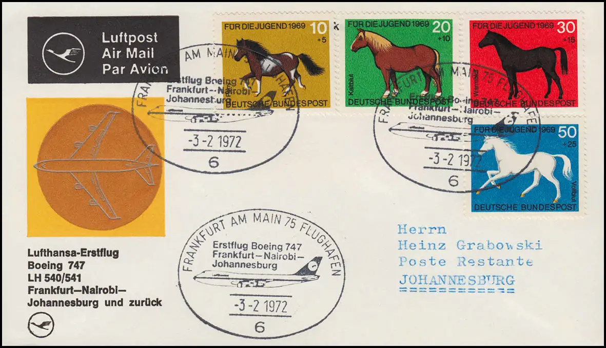 Lufthansa Premier vol LH 540/541 Boeing 747 FRANKFURT MAIN/ JOHANNESBURG 3.2.1972