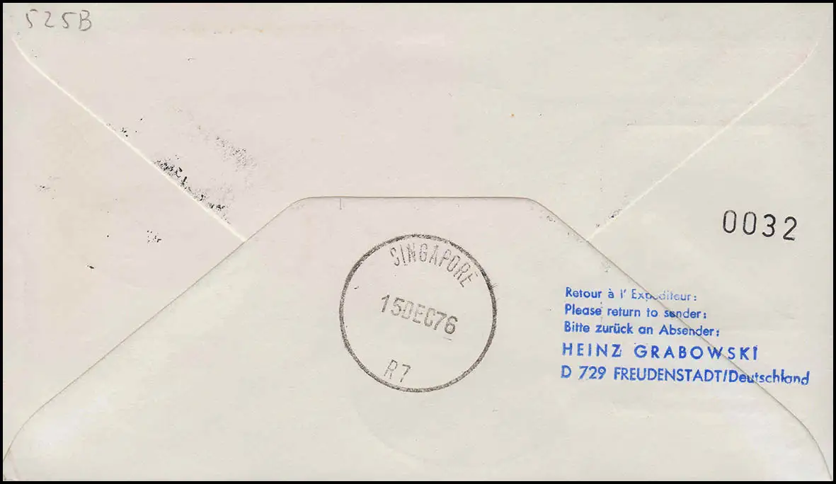 Tampon avant: December 14, 1976 LH 690 First Flight Boeing 747 Francfort /Main - Bombay - Singapore - Jakarta - Sidney. Au dos: Template d'arrivée noir Sinapoore R7 15 Dec 76. Tapeau de numéro 0032. Essai: original Référence produit: 00000000019545>P>Note: Cet article n'est disponible qu'une fois. Vous recevrez exactement l'article représenté.
