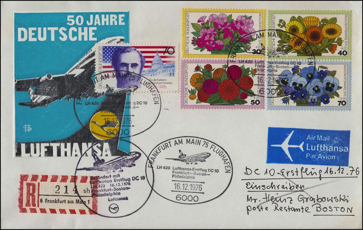 Lufthansa Premier vol R-Lettre DC 10 LH 420 Frankfurt Main / Boston 16.+ 17.12.1976