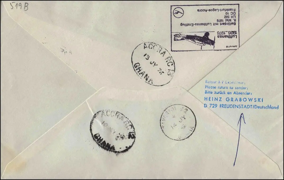 Lufthansa Premier vol R-Lettre DC 10 LH 562 Frankfurt Main / Accra 8.5. +10.5.1976