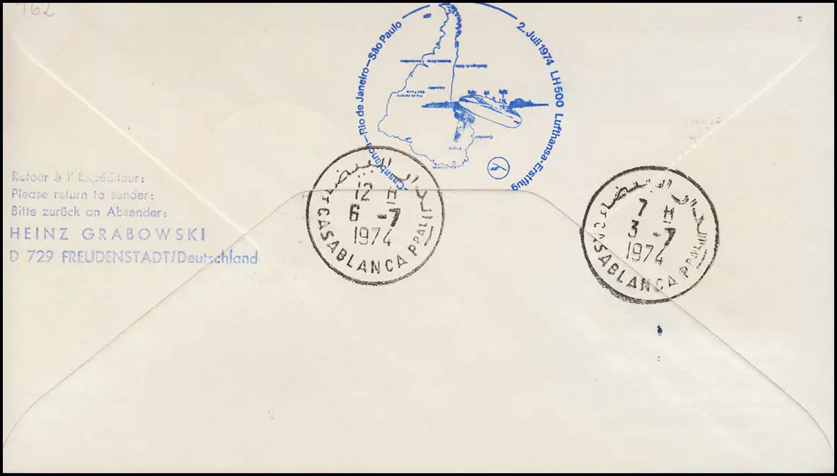 Lufthansa Premier vol DC 10 LH 500 FRANKFURT MAIN/ CASABLANCA 2/3.7.1974