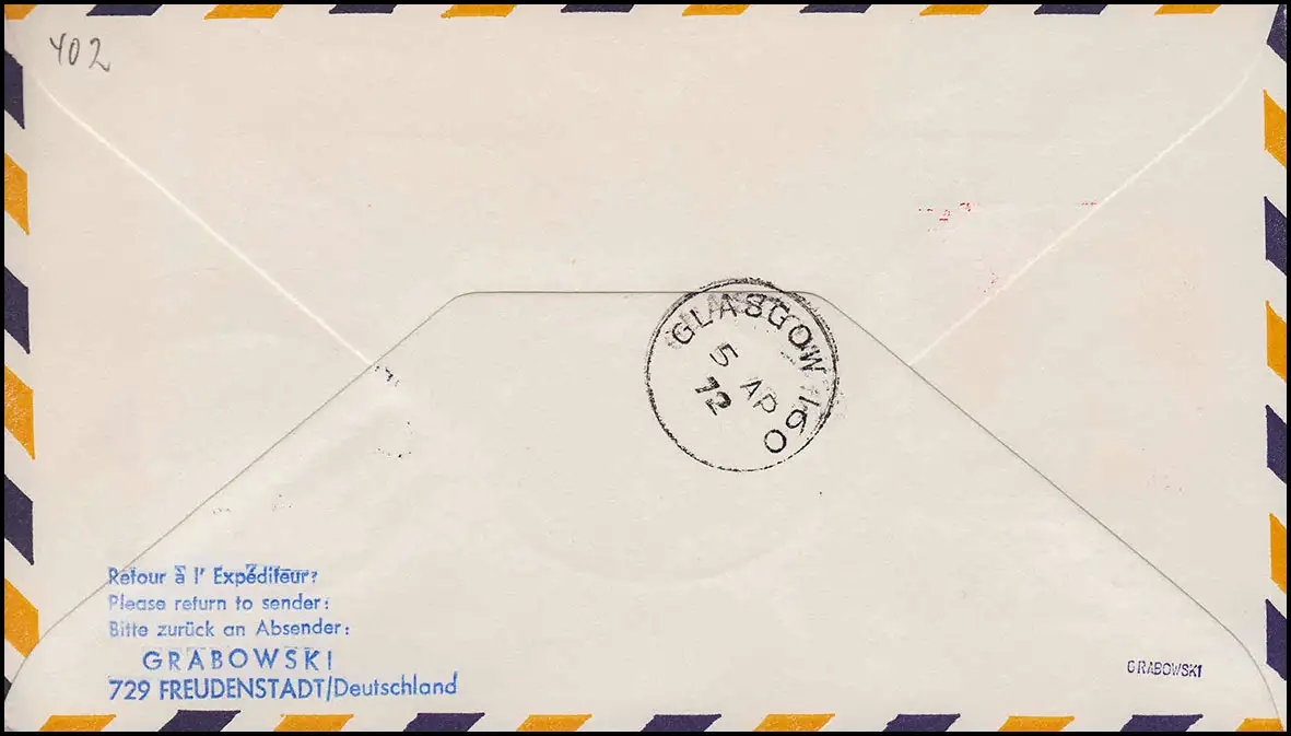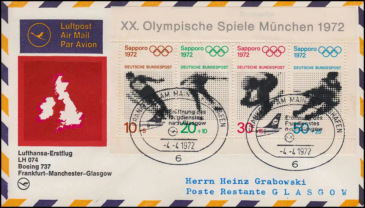 Lufthansa Premier vol LH 074 Boeing 737 FRANKFURT MAIN/ GLASSOW 4/5.4.1972