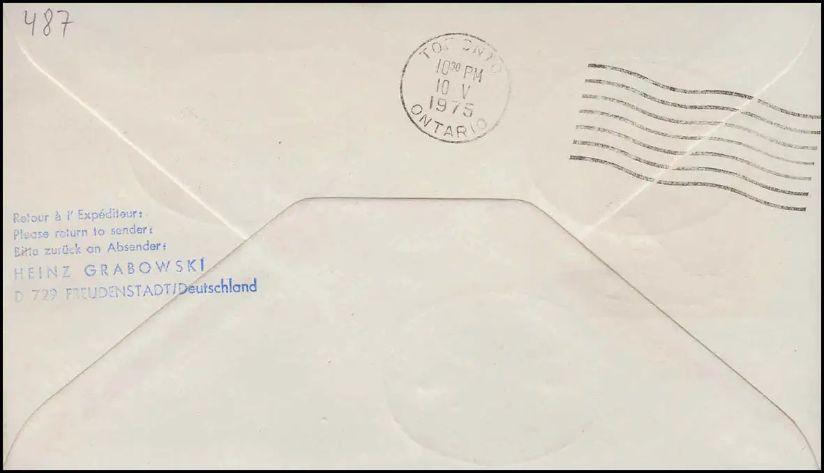Lufthansa R-Lettre Premier vol DC 10 LH 444 Frankfurt Main/ Toronto 10.5.1975