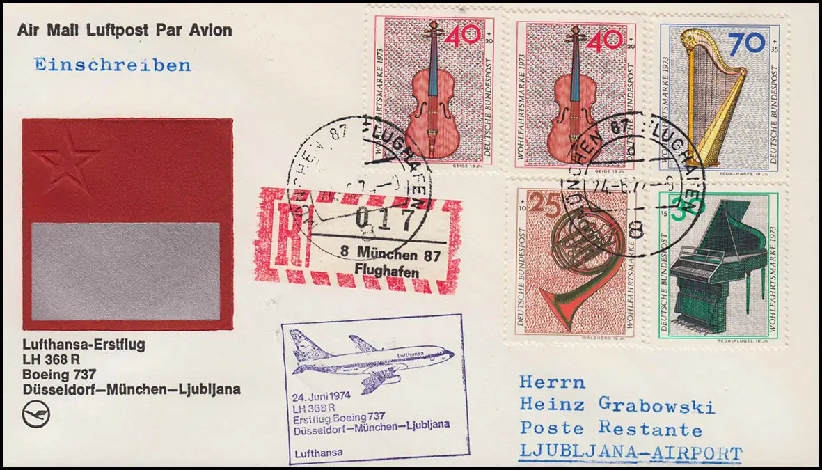 Lufthansa R-Lettre Premier vol Boeing 737 LH 368 R, MUNICH/ LJUBLJANA 24.6.1974
