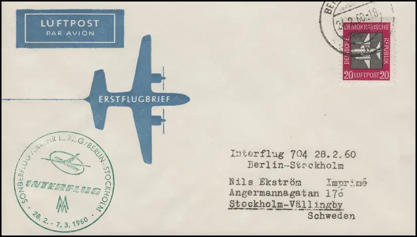 Aeropost Interflug IF 704 Berlin-Kobenhagen 28.2.60, impression BERLIN 24.2.60