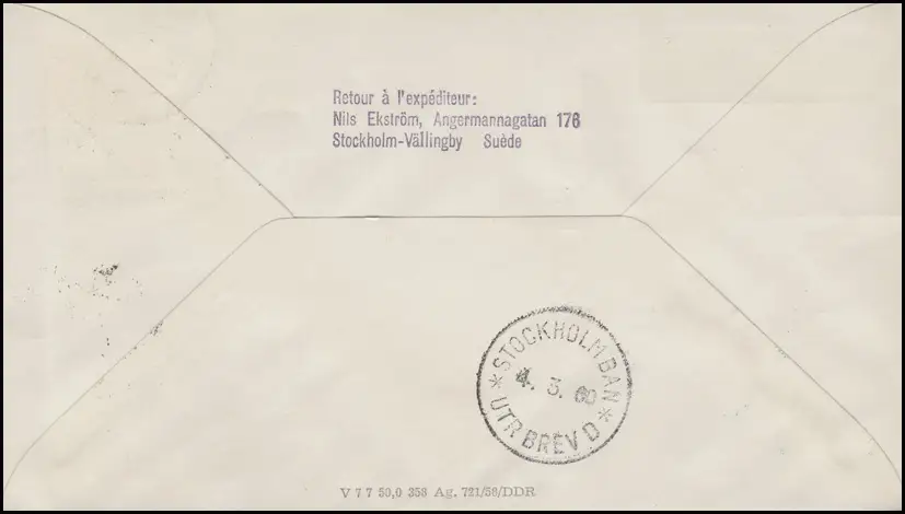 Avec le cachet d'arrivée STOCKHOLM 4.3.60. Numéro de catalogue: 610 Vérification: original Référence produit: 00000000032310>P>Remarque: Cet article n'est disponible qu'une seule fois. Vous recevrez exactement l'article représenté.
