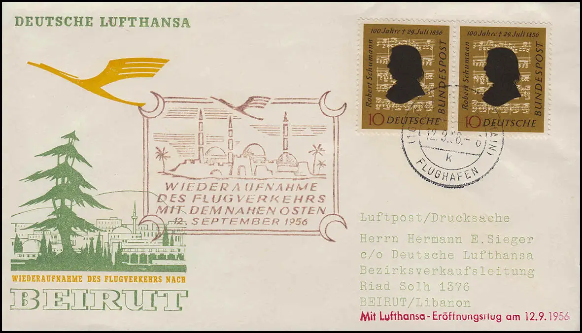 Airpost Lufthansa Vol d'ouverture Francfort Main/ Beyrouth 12. + 15.9.1956