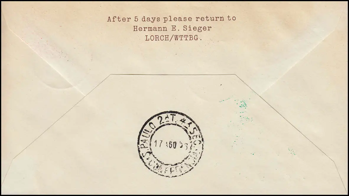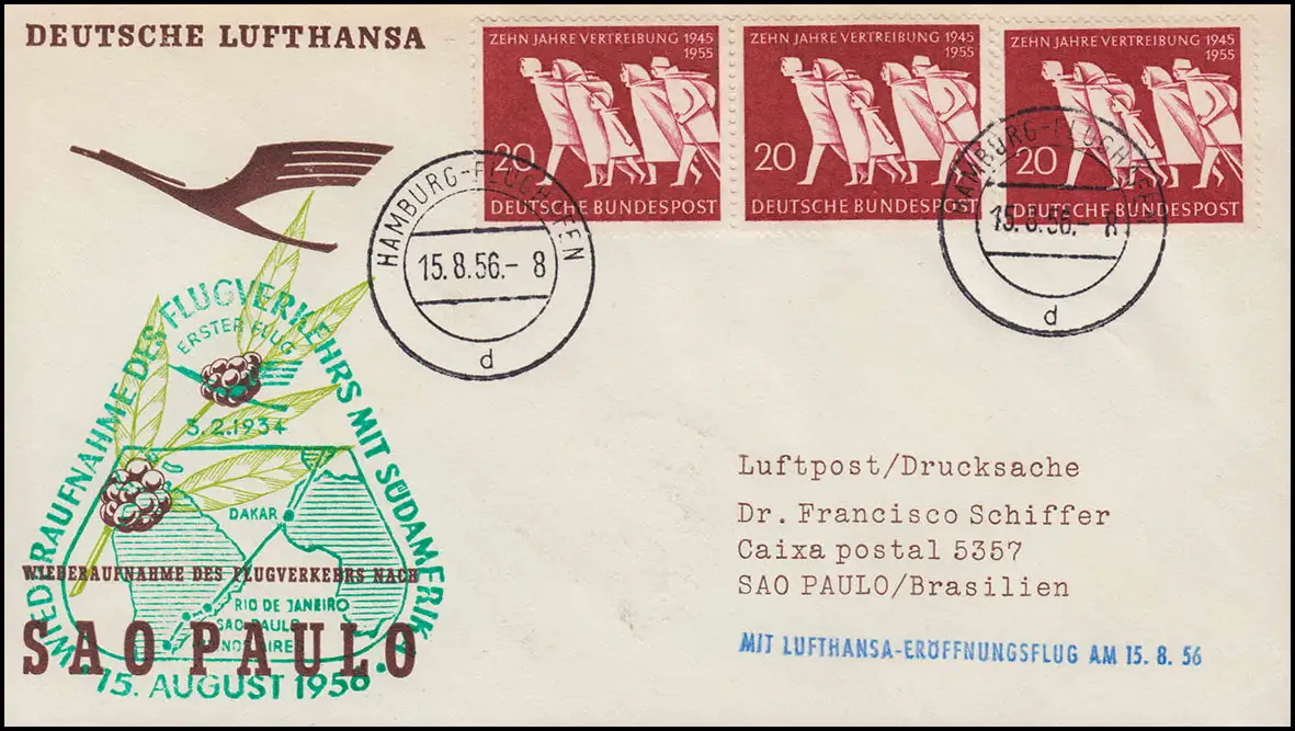 Airpost Lufthansa Vol d'ouverture HAMBURG/ SAO PAULO 15/17.8.1956