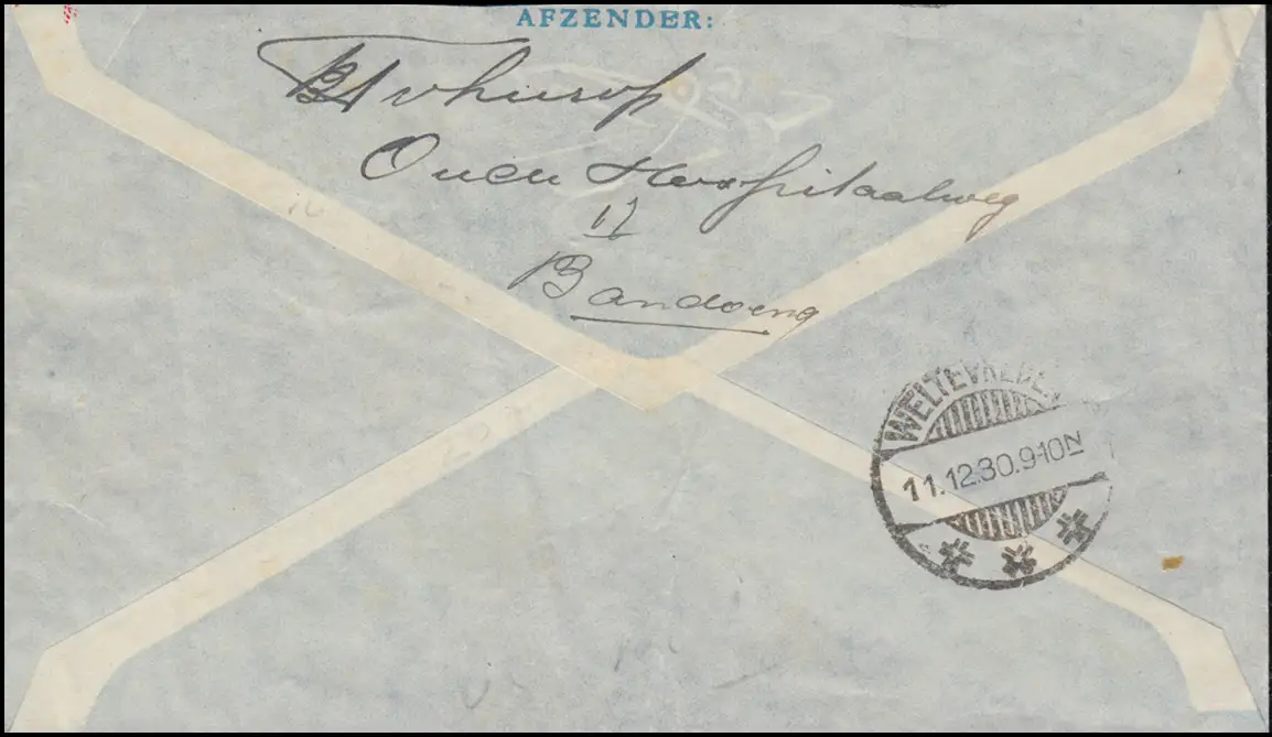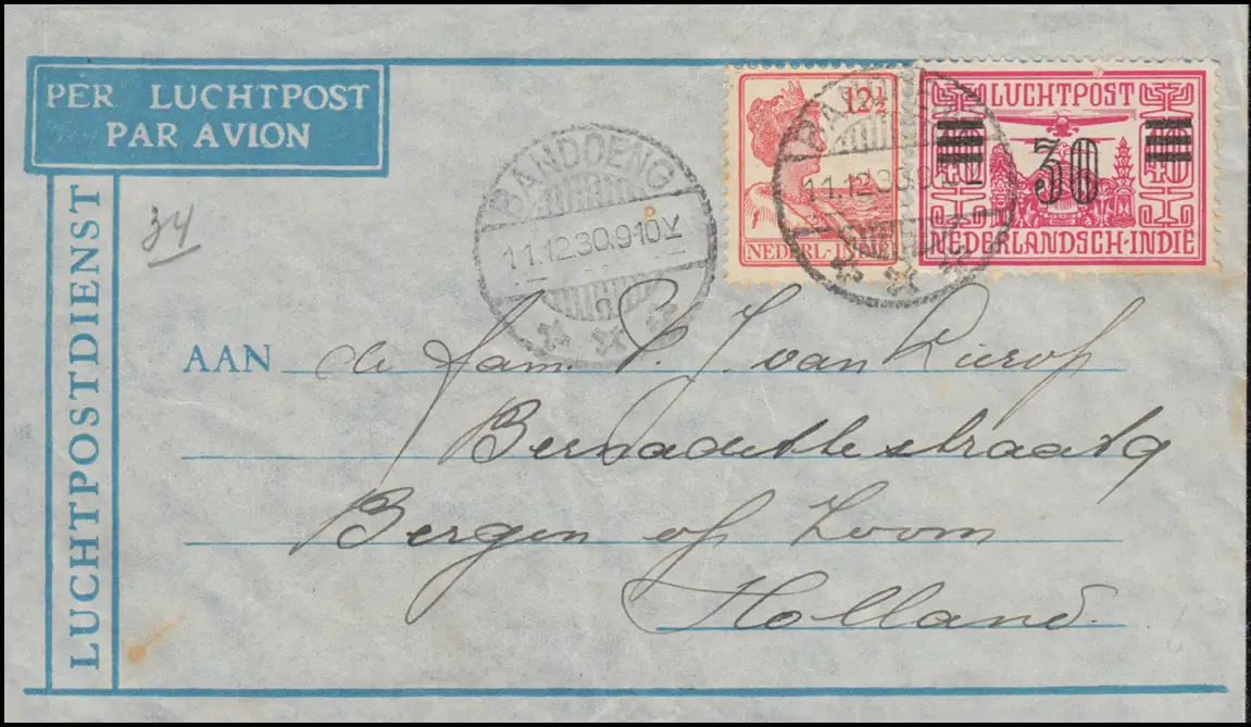Lettre postale aérienne de BANDOENG 11.12.1930 vers Bergen/Holland