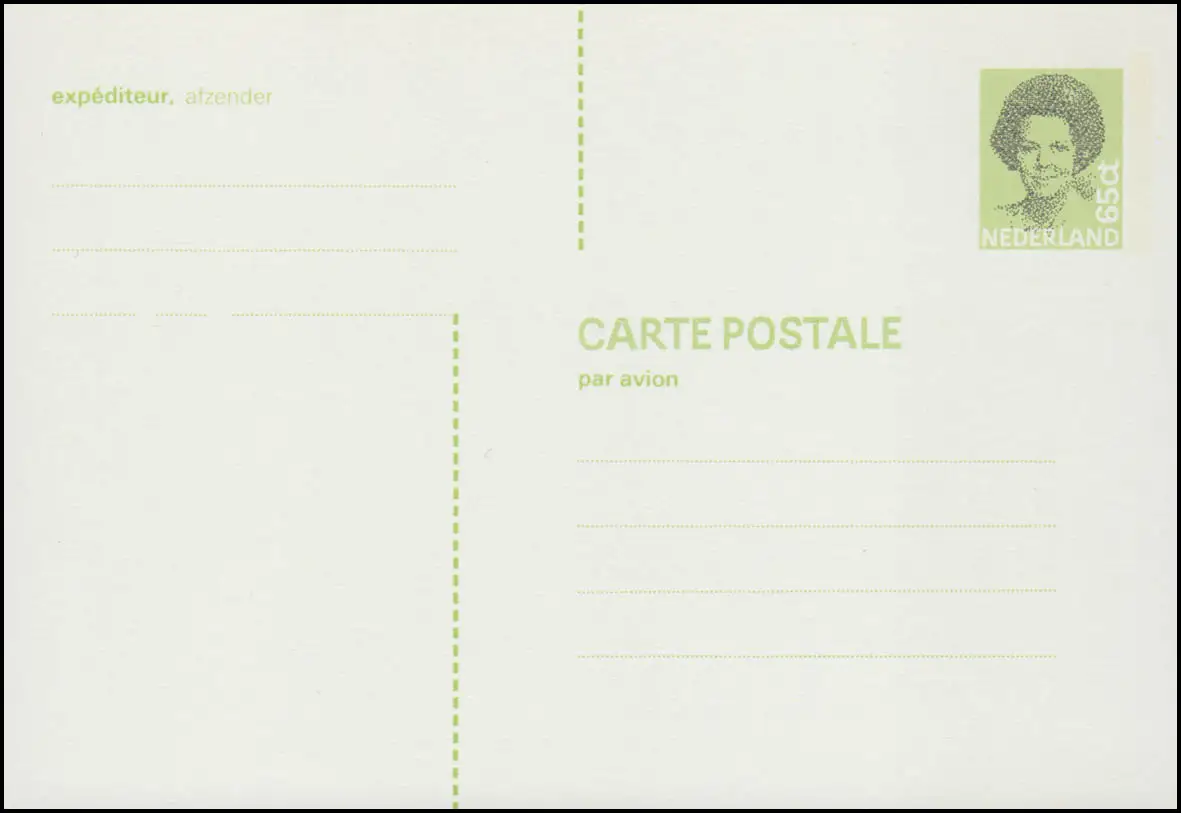 Carte postale aérienne LP 9 Reine Beatrix 65 centimètre 1982, non utilisée ** / MNH