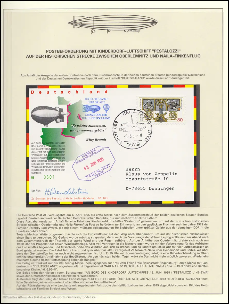 Poste de dirigeable DKL 30 PESTALOZZI Sur l'ancienne frontière RDA-RFA SSt NAILA 6.6.95