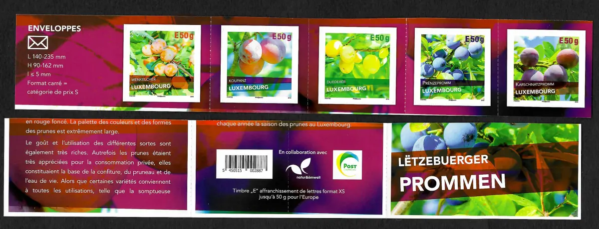 Luxembourg 2018: Pflaumenvielfalt, Letzebuerger Prommen I, aus MH, postfrisch