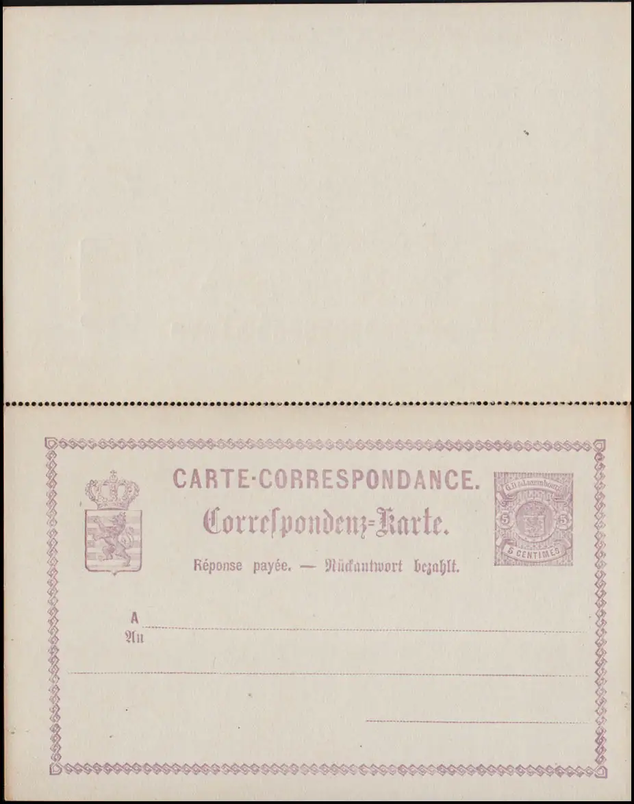 Luxembourg Carte postale P 10 Double 5/5 C., inutilisé, léger jaunissement