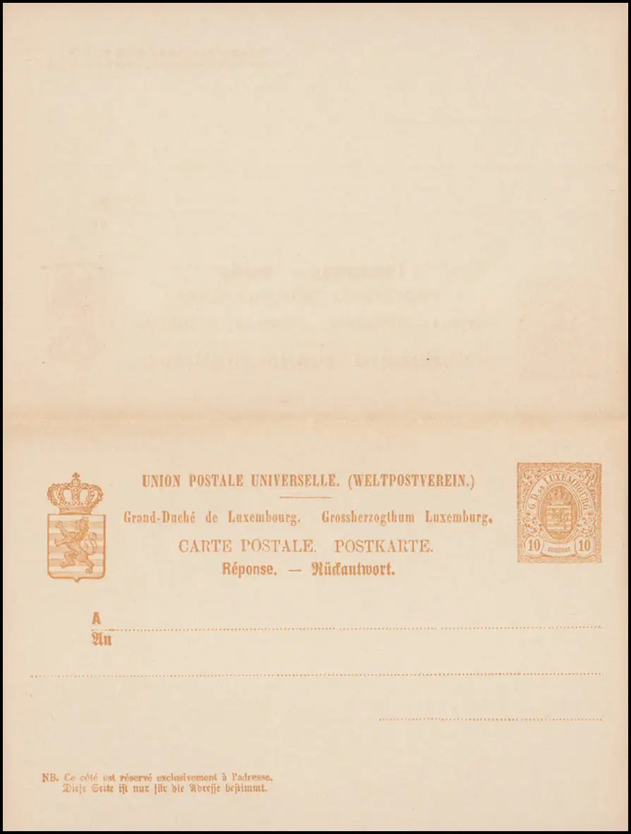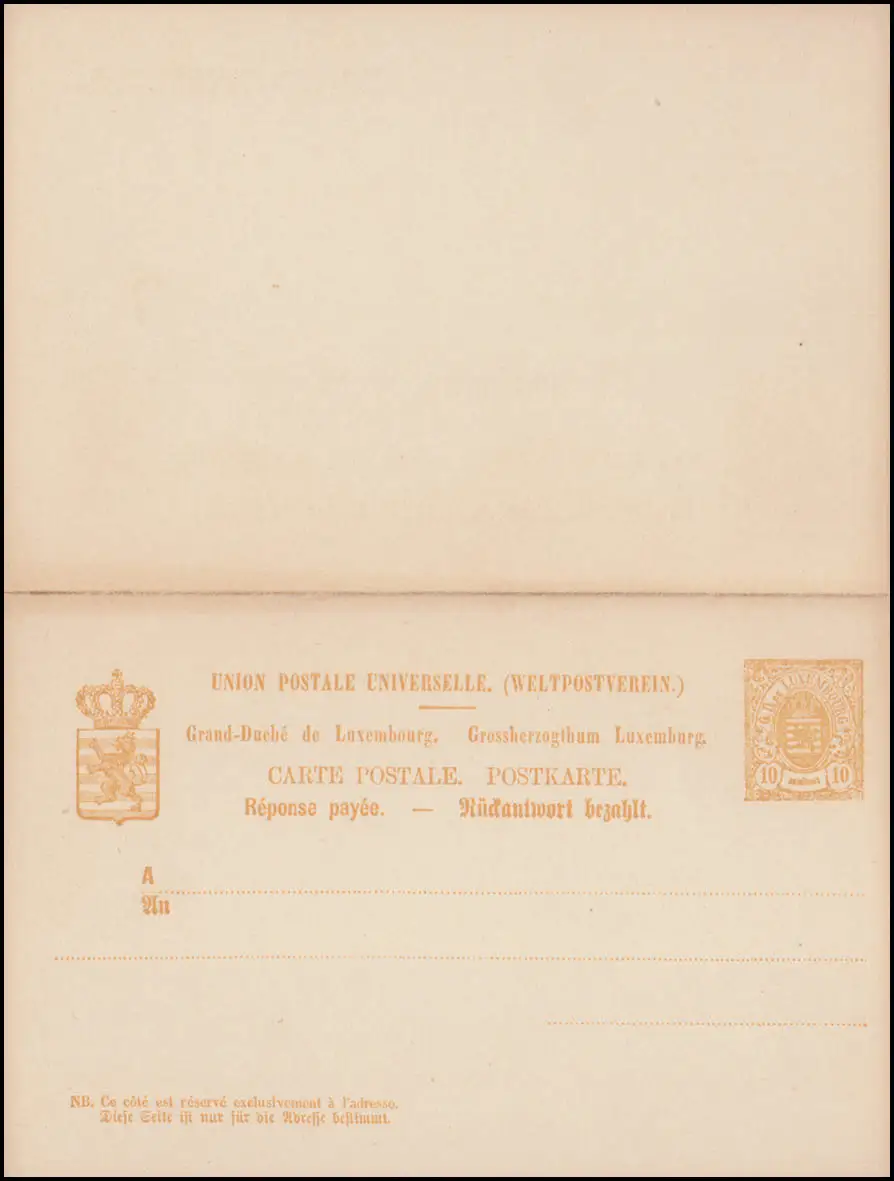 Luxembourg Carte postale P 34 Carte double 10/10 C., non utilisée **, jaunissement de marge