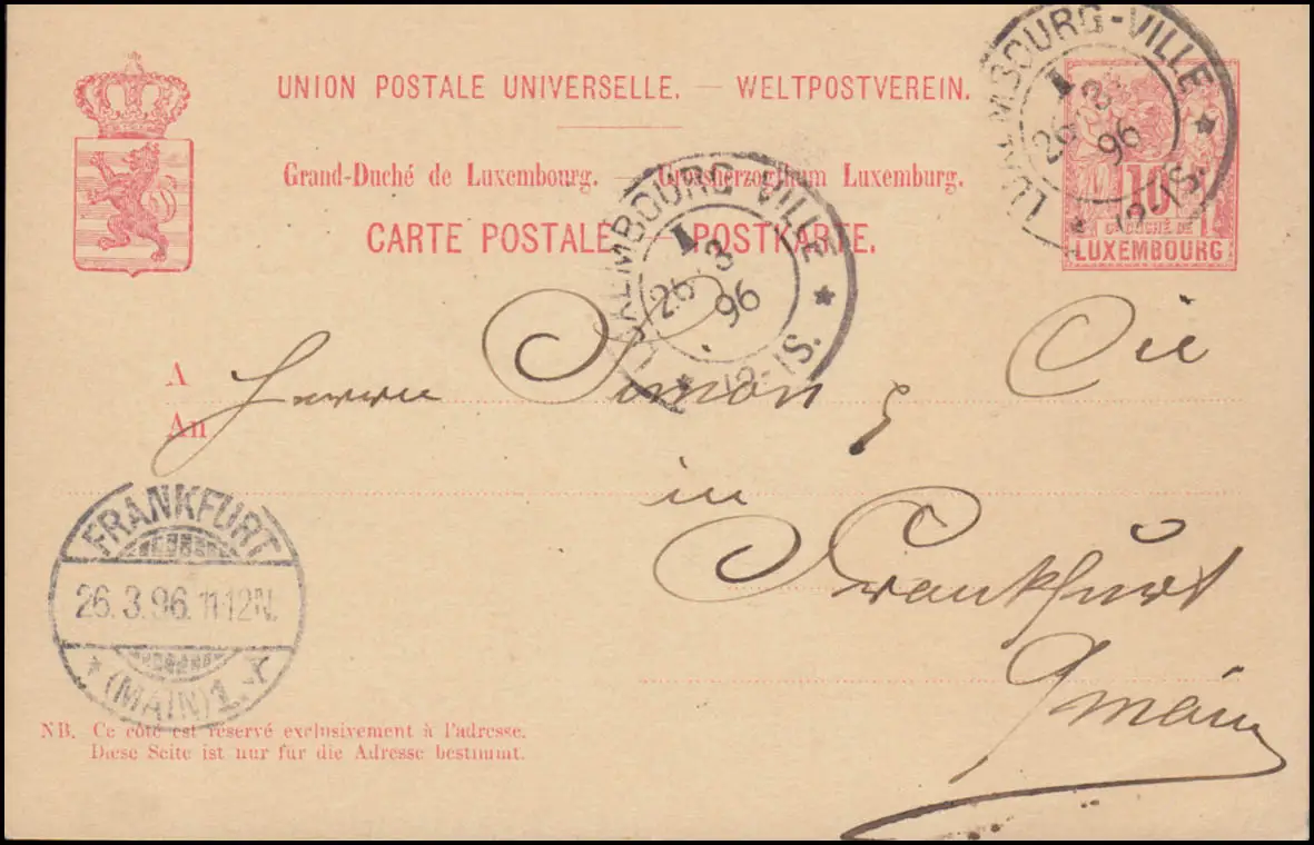 Luxembourg Carte postale P 50II de LUXEMBOURG-VILLE 26.3.96 vers FRANKFURT/M. 26.3