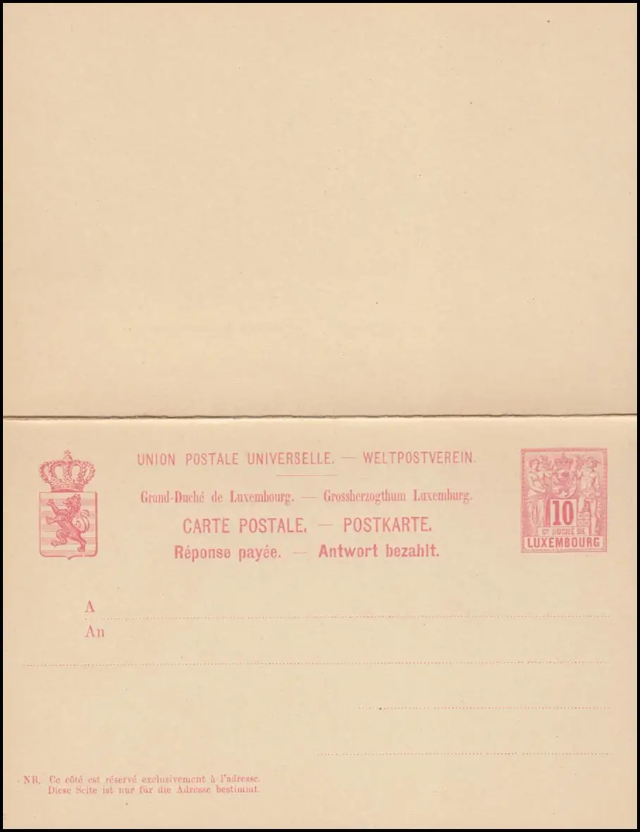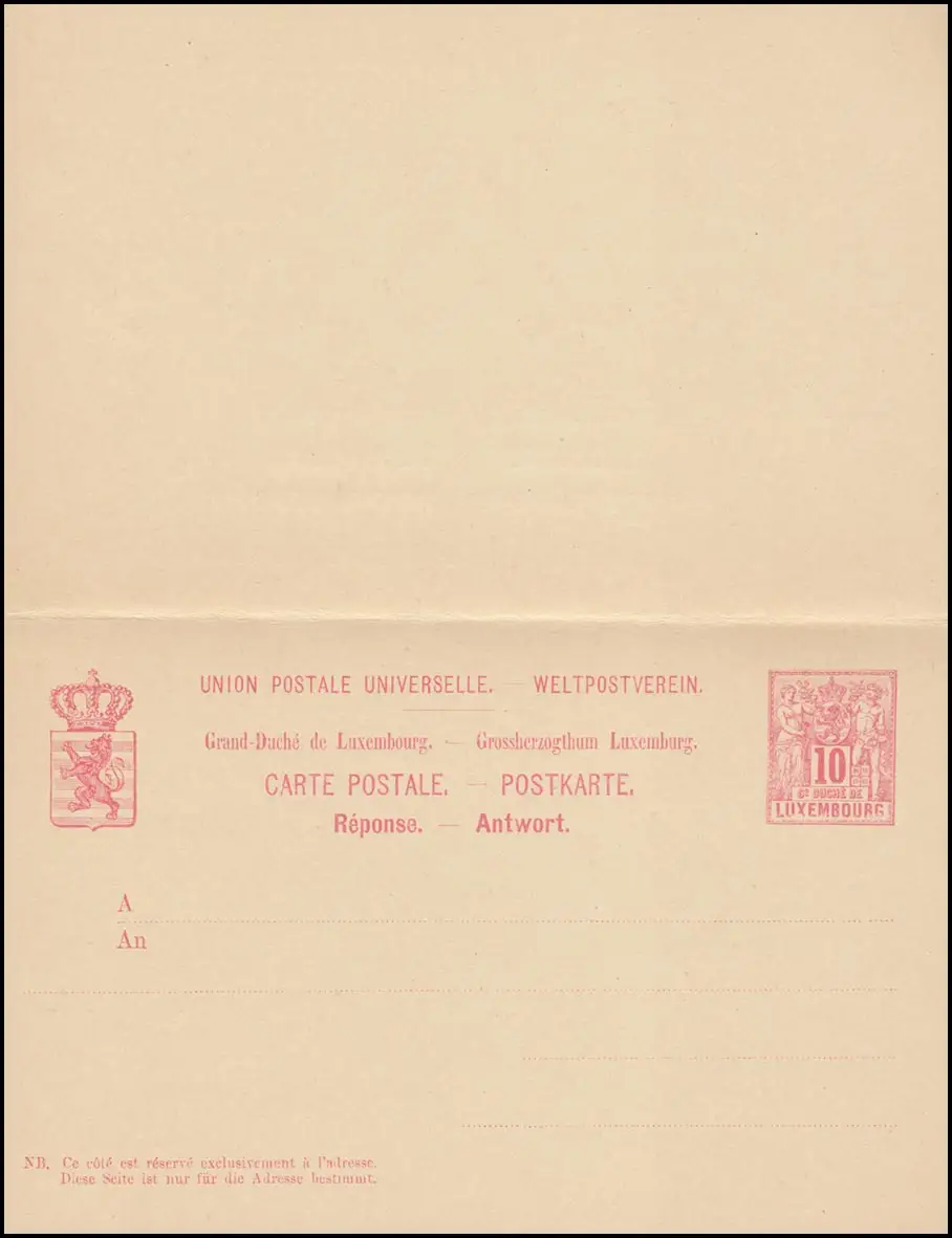 Luxembourg Carte postale P 52II Allegorie Carte double 10/10 C., 139x90, non utilisée